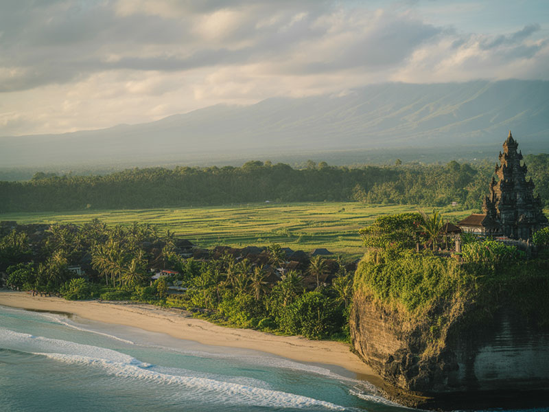 بالی جایی است که اقیانوس هند با صدای بلند به صخره های آتشفشانی برخورد می کند و بخور عود از معابد هزار ساله به آسمان می پیچد؛ جایی که یک فنجان قهوه لواک در دستان تان، منظره مزارع برنج زمردین را قاب می گیرد و صدای گاملان از دور، ضربان قلب جزیره را به شما یادآوری می کند. این جزیره نه فقط مقصد، بلکه یک اعتیاد است؛ اعتیاد به رنگ های غروب نارنجی، طعم ساتای تازه کباب شده روی شن های داغ، و حس رهایی وقتی تاب بالی سوئینگ شما را بالای دره های سبز معلق می کند.