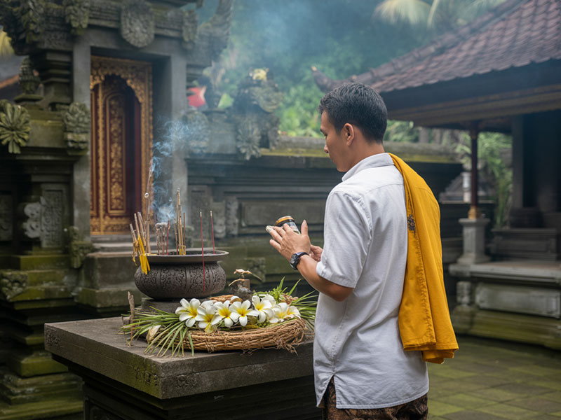 "پولائو دِواتا"؛ جزیره خدایان؛ لقبی که از قرن چهاردهم در متون جاوه ای مانند نگارا کرتا گاما آمده و به دلیل حضور بیش از ۲۰۰۰۰ معبد فعال (هر روستا حداقل ۳ معبد: پورا پوسه برای خالق، پورا دسه برای جامعه، پورا دالِم برای اجداد) به بالی داده شده. هندویسم بالیایی، ترکیبی از شیواییسم، ویشنوییسم، بودیسم تانتریک و انیمیسم محلی است؛ جایی که خدایان در سنگ های مقدس (پراتیما)، درختان بانیان، و رودخانه ها ساکن هستند. مراسم روزانه "مِلاستي" (تطهیر جهان با آب مقدس معابد) و جشنواره "نیِپی" (روز سکوت کامل ۲۴ ساعته، حتی فرودگاه تعطیل، اینترنت قطع، روشنایی ممنوع) منحصربه فردترین رویدادهای مذهبی جهان هستند؛ در نیپی ۲۰۲۵، بیش از ۵ میلیون نفر سکوت کردند. این معنویت، بالی را از پارتی آیلند به مقصد تحول روحی تبدیل کرده؛ بسیاری از گردشگران پس از ریتریت های ۱۰روزه، زندگی شان تغییر می کند.